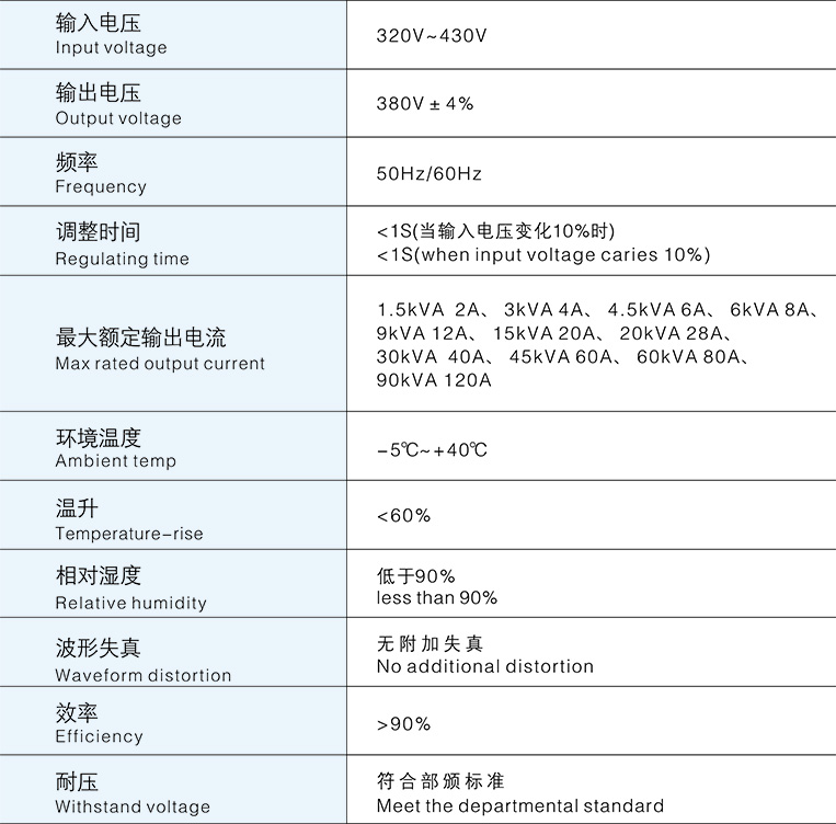 TNS(SVC)系列高精度全自動三相交流穩(wěn)壓器是由三只單相高精度全自動交流穩(wěn)壓器采取Y聯(lián)接而成,輸入電壓范圍寬,效率高, 具有過(欠)壓、過流等保護,穩(wěn)壓精度高,輸入與輸出電壓波形相同,產(chǎn)品體積小,重量輕。 適用于家庭、工廠、學校、機關、商店、科學實驗精密儀器等三相用電設備、設施的供電, 可以長時間運行。