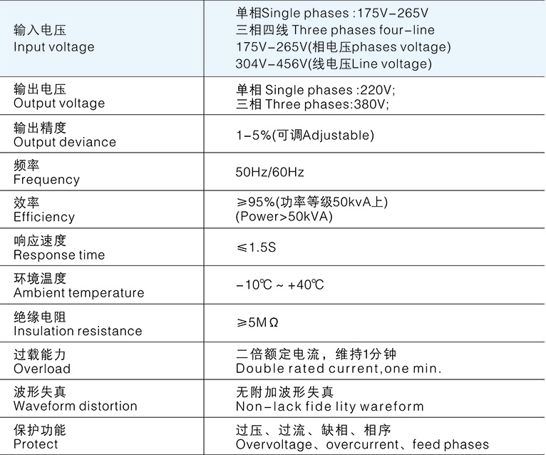 SBW、DBW系列單、三相全自動(dòng)補(bǔ)償式電力穩(wěn)壓器是適用于當(dāng)外界的供電網(wǎng)絡(luò)電壓波動(dòng)或負(fù)載變化而造成電壓波動(dòng)時(shí),能自動(dòng)保持輸出電壓穩(wěn)定。本系列產(chǎn)品與其它型式的穩(wěn)壓器相比,具有容量大、效率高、無(wú)波形畸變、電壓調(diào)節(jié)平穩(wěn)等優(yōu)點(diǎn),適用負(fù)載廣泛,能承受瞬時(shí)超載,可長(zhǎng)期連續(xù)工作,手動(dòng) / 自動(dòng)切換,設(shè)有過(guò)壓保護(hù)、缺相、相序保護(hù)及機(jī)械故障自動(dòng)保護(hù),本機(jī)體積小,重量輕,使用安裝方便,運(yùn)行可靠等優(yōu)點(diǎn)。(分?jǐn)?shù)顯、儀表指示兩類(lèi))。
