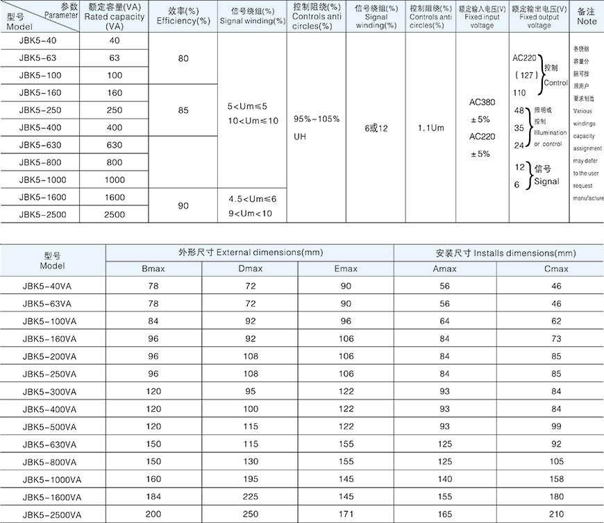 JBK5系列機床控制變壓器是我公司引進(jìn)德國90年代中期最新型變壓器系列,在國內(nèi)JBK3 系列機床控制變壓器基礎(chǔ)上,經(jīng)過多年來進(jìn)一步吸收國外同類產(chǎn)品,并優(yōu)選國外先進(jìn)方法的接 線端子結(jié)構(gòu)、將端子與骨架合在一起,使防護(hù)等級提高到lP2LX,防止偶然觸及電路。采用國 內(nèi)lT冷壓接線端子。接線方式可以使接線密集程度提高。 變壓器的硅鋼片與硅鋼片之間聯(lián)接、硅鋼片與底板聯(lián)接均采用氬弧焊焊接工藝,形成一個 整體,簡捷明了。尤其是底板一次性成型,安裝尺寸較JBK3系列更為準(zhǔn)確,而采用優(yōu)質(zhì)防蝕 合金材料,大大增高了接地性能的可靠性,全面提高了產(chǎn)品質(zhì)量,該產(chǎn)品符合VDE0550、IEC 204-1、EC439、JB5555、GB5226等有關(guān)國際、國家標(biāo)準(zhǔn),并榮獲歐共體“CE”認(rèn)證,美 國“UL”認(rèn)證??膳c國外產(chǎn)品互換使用。